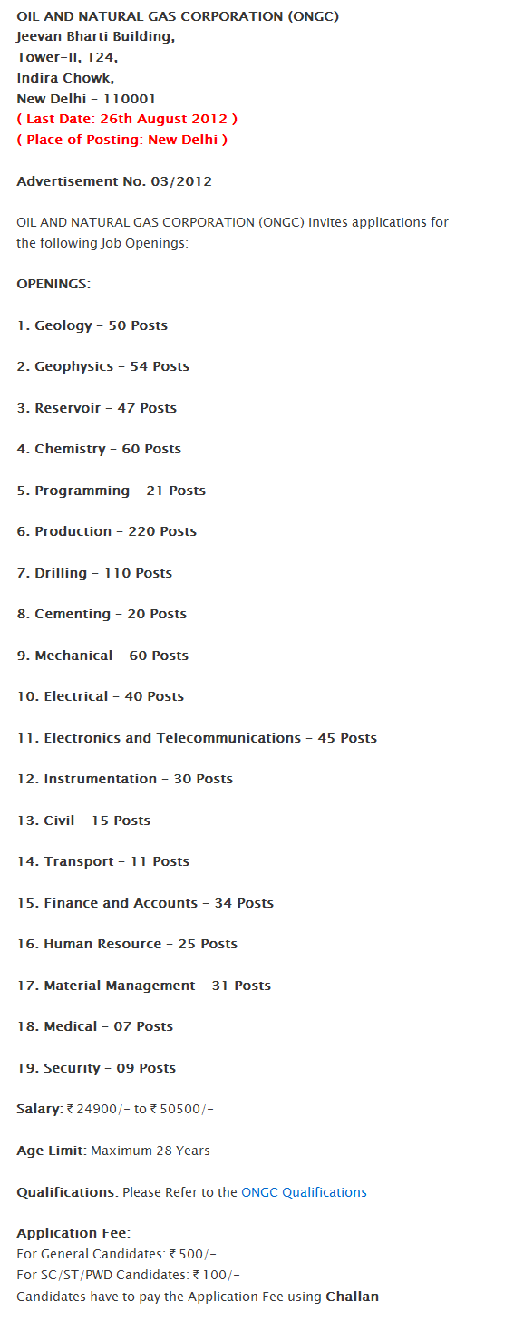 AND NATURAL GAS CORPORATION LIMITED RECRUITMENT OF GRADUATE TRAINEES-2012 Advertisement